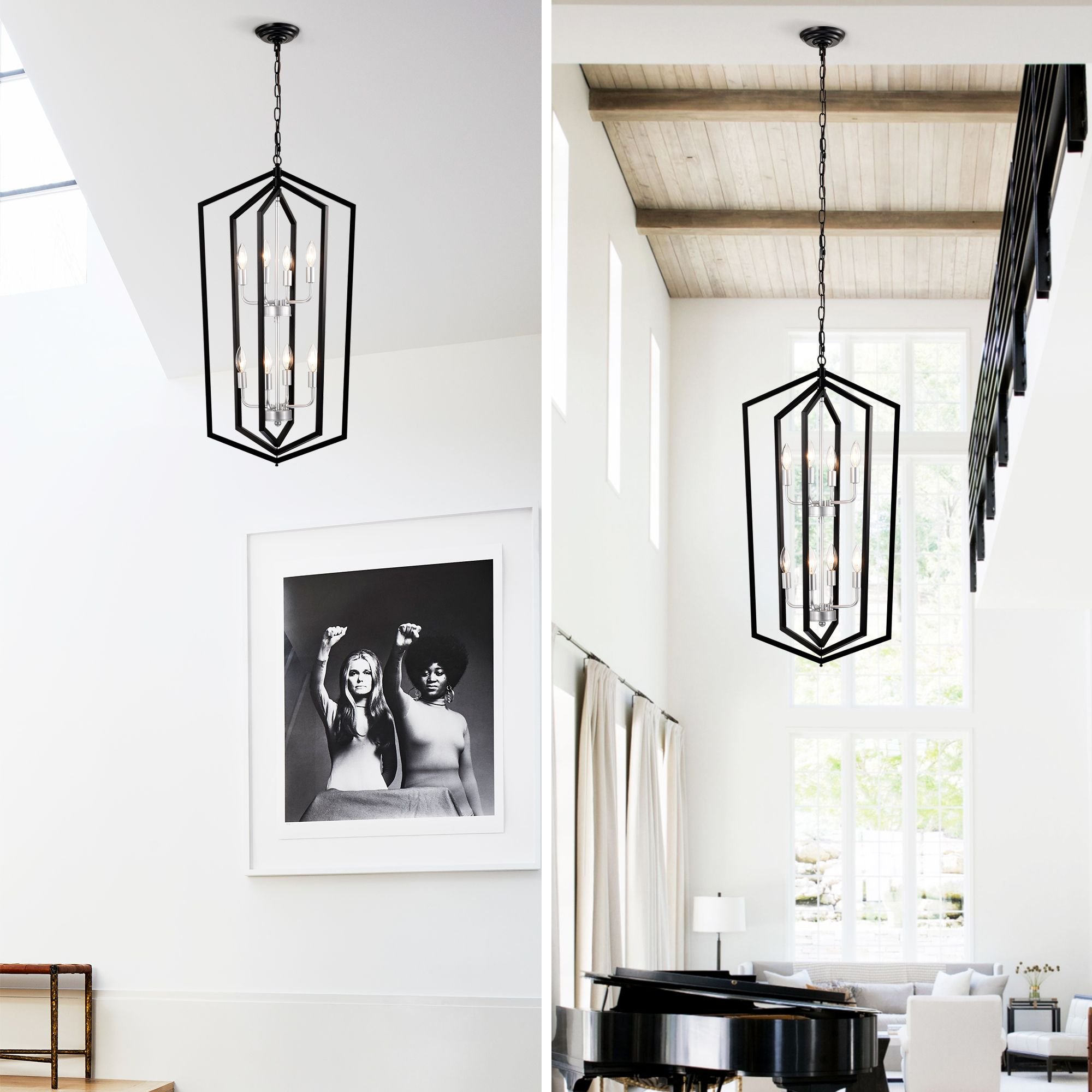 [Unique Chandelier] The pendant lights kitchen island features a lantern shape with matte black finish and Sliver finish, offers a rustic yet modern vibe. With its beautiful design, this ceiling hanging light will be a focal point in any area. Perfect for dining room, kitchen, living room, bedroom, office conference room or areas with high ceilings like foyers or entryways, stairways.
