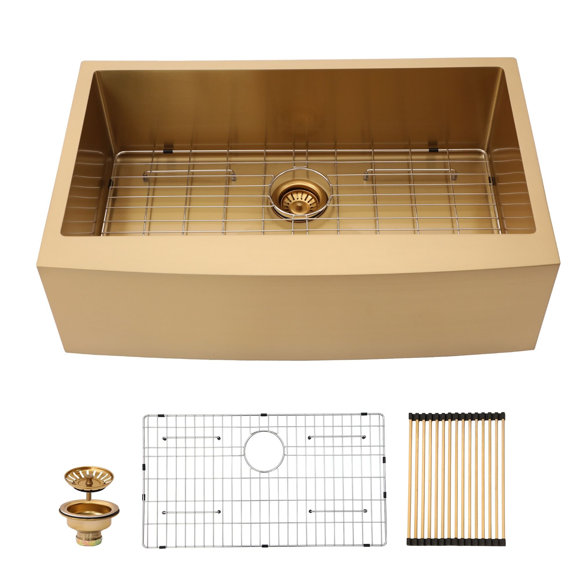 Product Name:Lordear Gold Farmhouse Sink 16 Gauge Kitchen Sink Apron Front Single Bowl Rose Gold Stainless Steel Sink