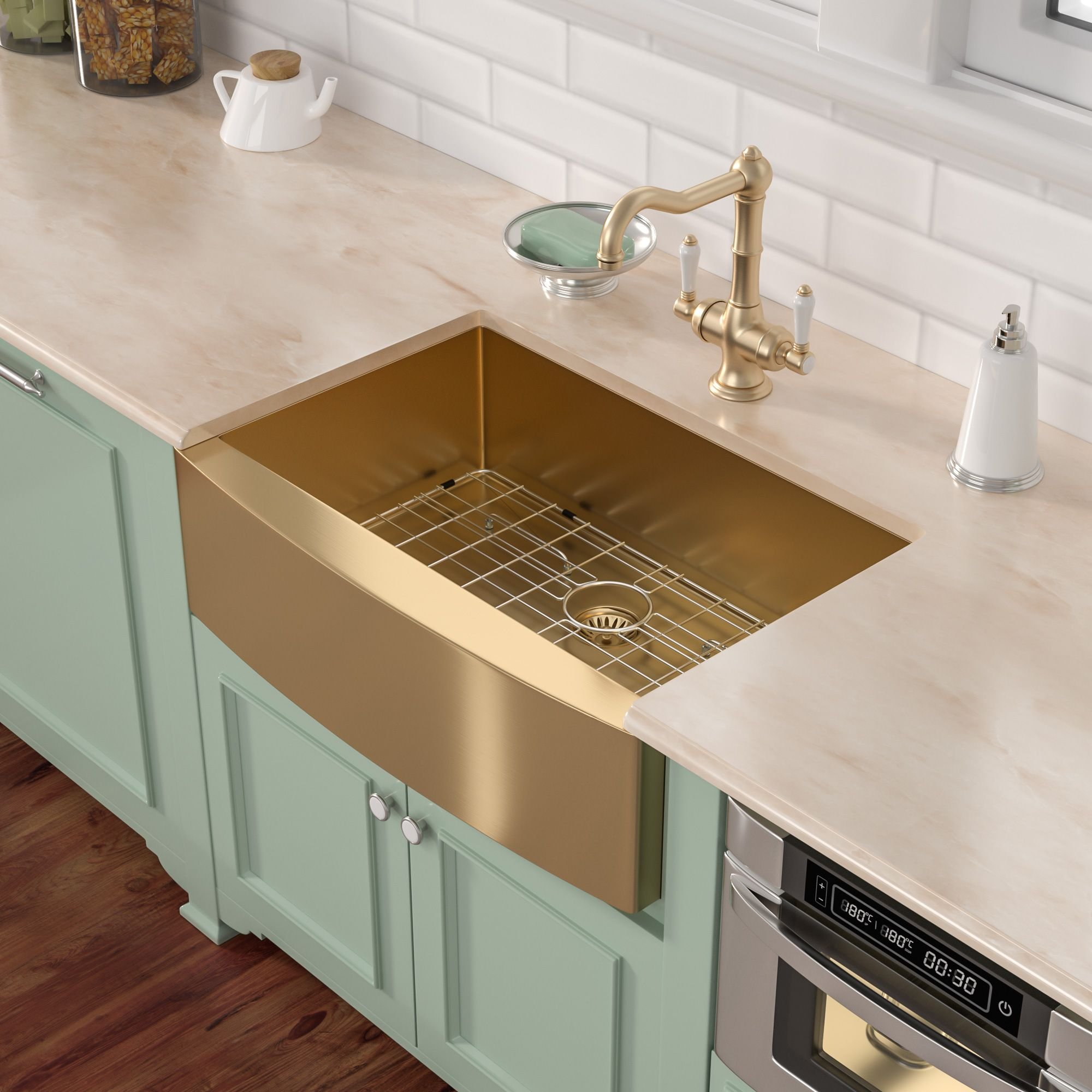 1.GOLD finish - Gold or Rose Gold colored hardware is now a very trendy kitchen style. Now you can add Gold or Rose Gold sink to match your fixtures.