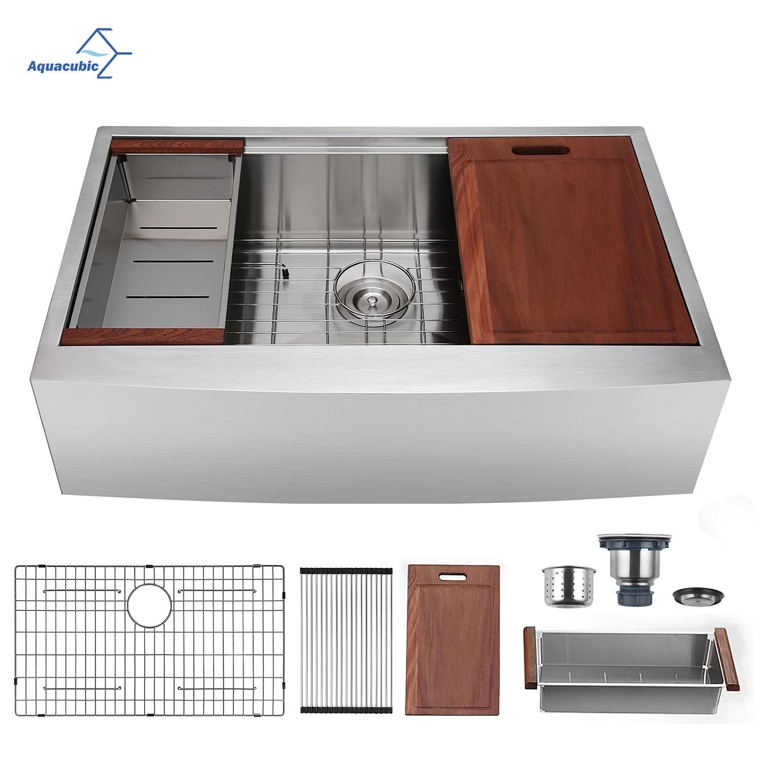 2.Drainage unblocked:Aquacubic single bowl kitchen sink Handcrafted by skilled artisans, the bottom is slightly tilted to prevent water from staying in the sink, a removable drain strainer prevents pet hair buildup for easy cleaning.
