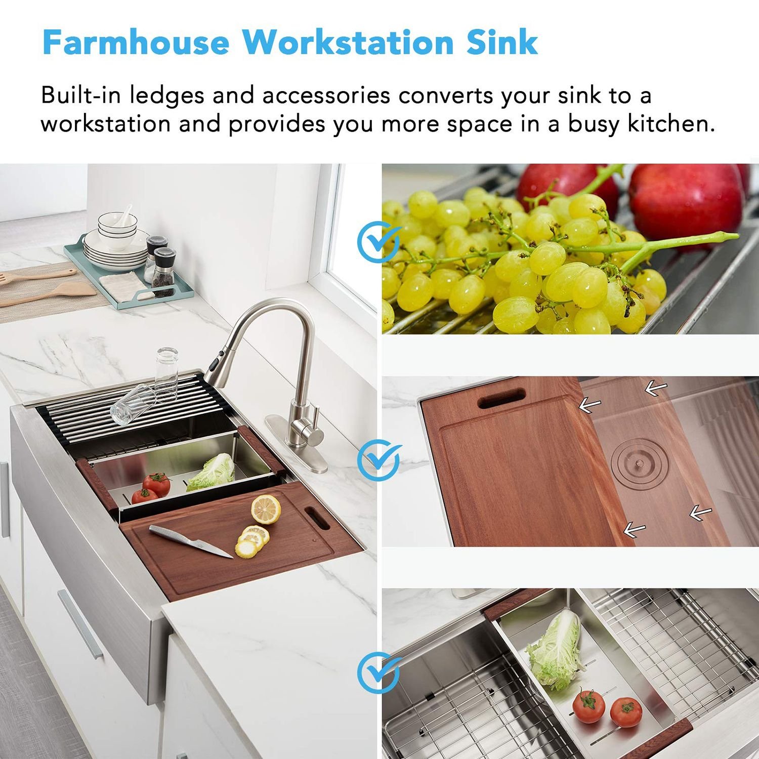 1.The Nano Surface:33 inch Farmhouse kitchen sink with Nano technology creates an protective coating that gives your sink high hardness, no worry about scratch, Your pets will never scratch the tub. giving your pet a lovely bath.