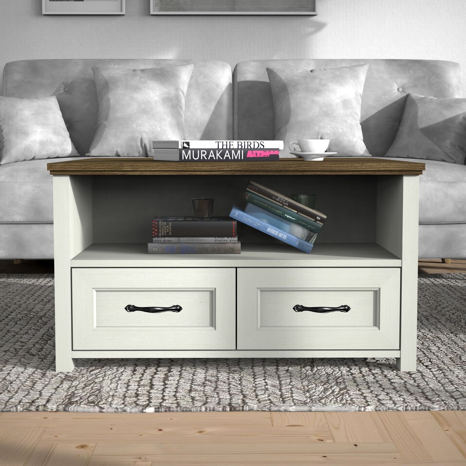 with a unique fence and the design of "X", which makes the farmhouse coffee table more stable and noble.