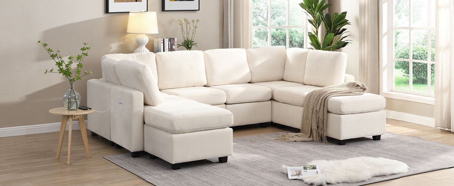 Free Combination - Our sectional sofa comes with two movable ottomans, allowing for versatile configurations. You can easily rearrange the ottomans to create various layouts, including oversized U-shaped sofa, or even transform it into a sofa bed.