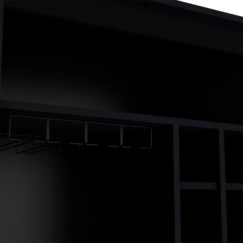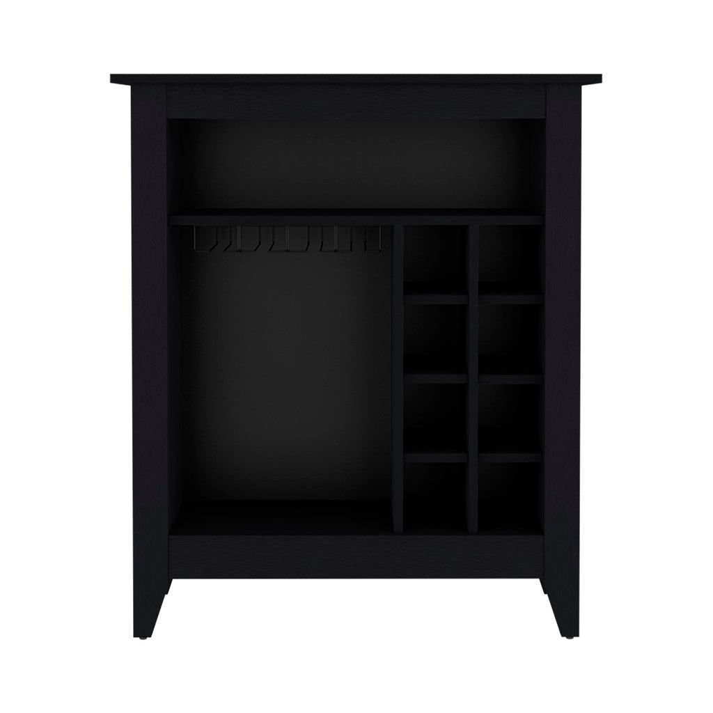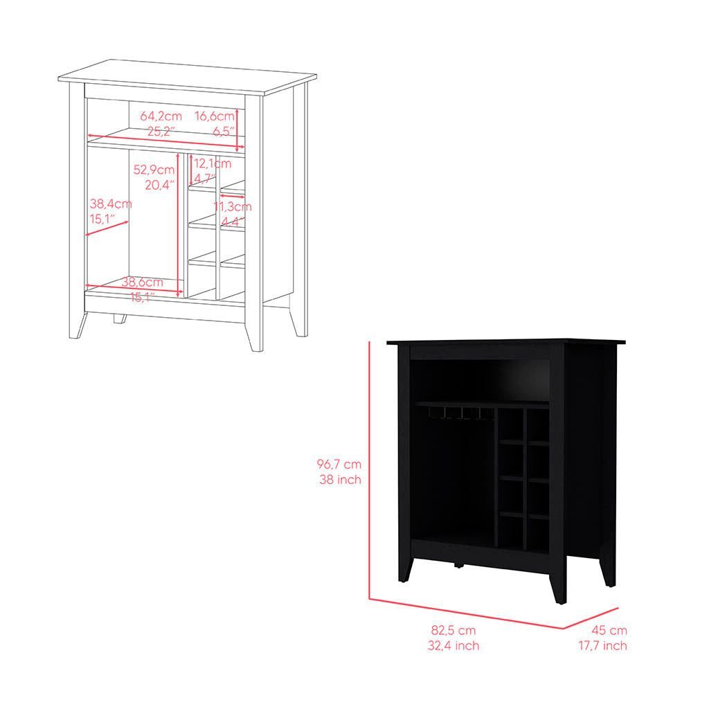 Castle Bar Cabinet, if you're a wine connoisseur who needs plenty of storage for your bottles, the Castle Bar Cabinet is perfect for you. With eight cubicles (4.8'H X 4.4'W) for your favorite wine and plenty of storage space for your glasses, this bar cabinet also has an interior shelf to give you extra room. Plus, the ideal superior top (37.12'') makes it easy to decorate. Designed with an elegant Black wengue wood finish.Dimensions:Height: 38,0" Width: 32,4' Depth: 17,7''Furniture Type: Ready to assemble (full assembly required).Certifications: CARB phase II compliant – TSCA Title VI Compliant.Warranty: 1-year warranty coverage in wooden parts 1-year warranty coverage in hardware pieces since its manufacturing date is found in the lot number printed in the product box.Shipment details: Free shipping to the 48 contiguous states delivery time: Between 2 and 5 days depending on the customer's location, season, and weather factors.Other details: This product does not include decorative or background elements; Check that the box is in good condition, and well packed, and check with the help of the manual that the corresponding parts have been included; For more information regarding warranty, shipment details, cancellations, returns & replacement parts go to the bottom section of our website to learn more; Installation & Assembly Instructions included.