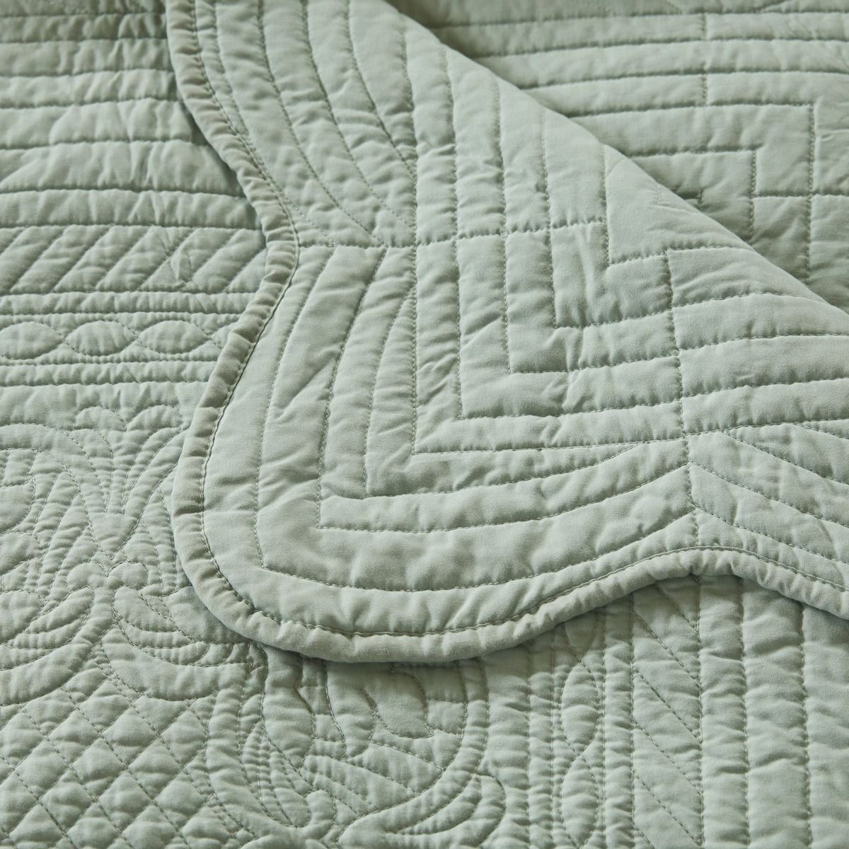 Oversized Quilted Throw with Scalloped Edges Seafoam 60x72"